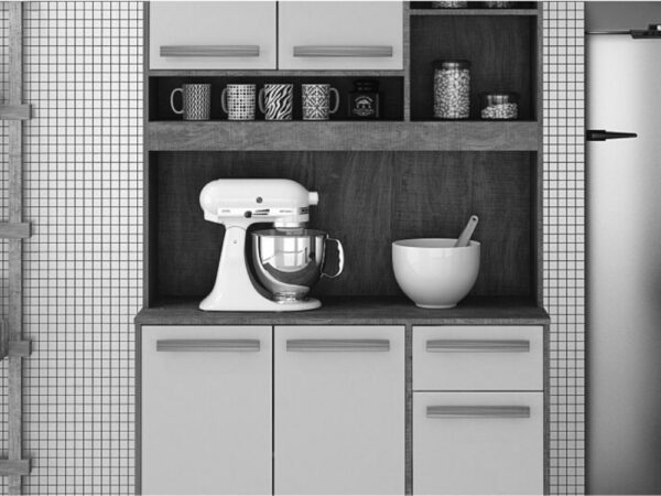 O Armário Kit de cozinha Ametista possui um design moderno e compacto, com puxadores em EPS, ele se destaca por sua praticidade em espaços compactos, com o mesmo padrão de acabamento de alta qualidade, e ainda conta com corrediças telescópicas e um espaço amplo para seus eletrodomésticos ou objetos de decoração.