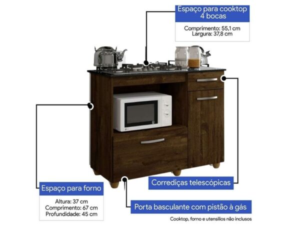 Otimize o espaço da sua cozinha utilizando o belíssimo balcão para cooktop Violeta, ele conta com muito espaço para organizar os seus utensílios mais utilizados e necessários durante o preparo de seus alimentos. Dê um toque especial em sua cozinha com esse versátil e charmoso móvel. Aproveite!