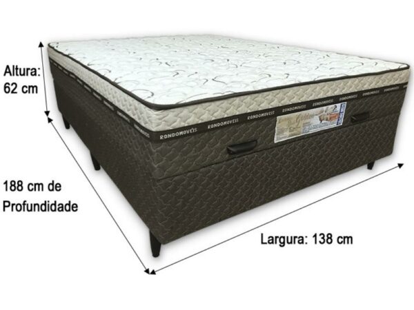 A Camabox Baú Golden Light casal é ideal para maior aproveitamento do quarto, pois oferece conforto, espaço extra e praticidade. Você pode guardar roupas de cama, travesseiros, malas e o que preferir. Produto de alta durabilidade, resistente e excelente acabamento, tampo revestido em malha e matelassê com espuma HD, pistões à gás, puxadores para auxiliar na abertura e fechamento do baú.