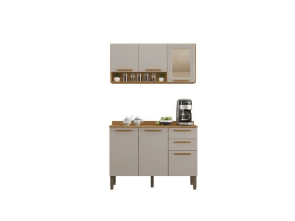 Combo Armário de Cozinha Aéreo 3 portas Reflecta + Balcão 1.20 New Valência – Cinamomo/ Off White