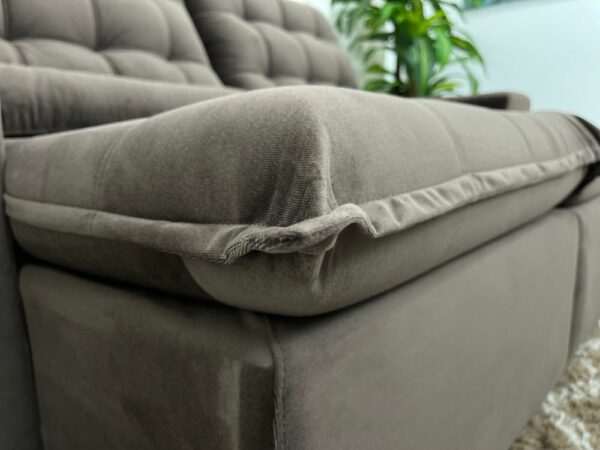 Costura dupla com design de losango no encosto e estrutura em madeira
