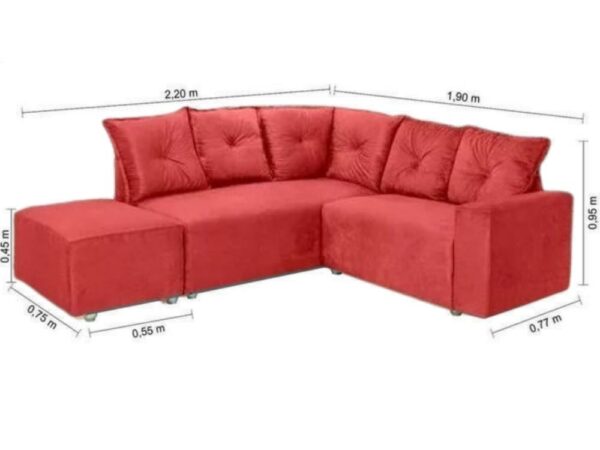 Conjunto de sofá de canto 2 x 3 lugares com Puff REF 5040 – Vermelho