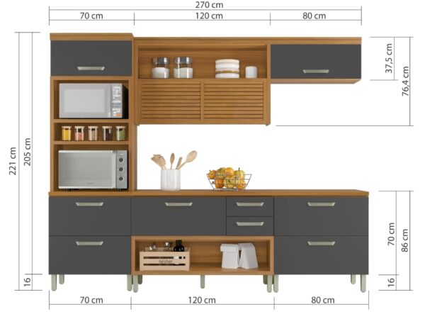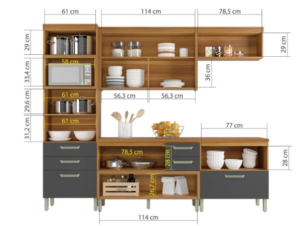 Cozinha Completa Princesa 4 peças – Freijo/Grafite
