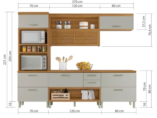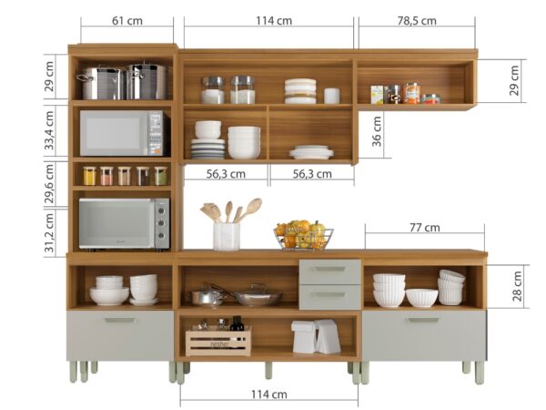 A Cozinha Princesa é especial, com design contemporaneo, robusto e praticidade tem ainda de presente uma linda caixa organizadora no balcão de 1,20. Produzida em 100% MDF, foi inspirada em cozinhas planejadas e está disponível em módulos, permitindo composições variadas, projetada exclusivamente de acordo com o seu espaço.