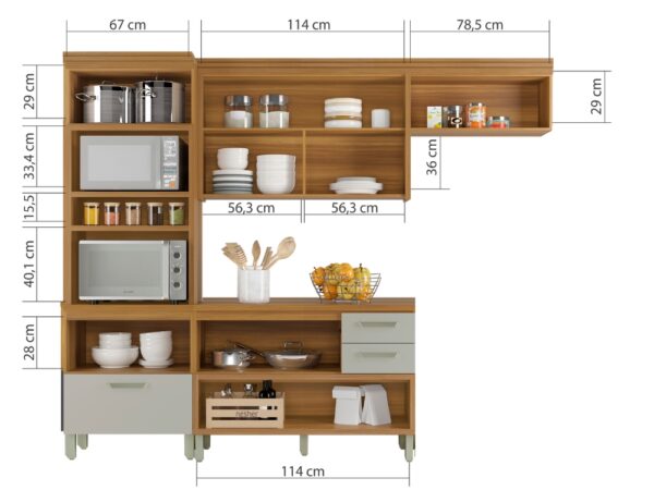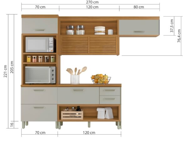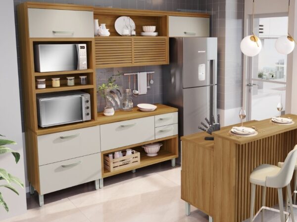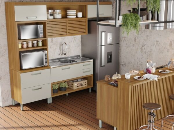 A Cozinha Princesa é especial, com design contemporaneo, robusto e praticidade tem ainda de presente uma linda caixa organizadora no balcão de 1,20. Produzida em 100% MDF, foi inspirada em cozinhas planejadas e está disponível em módulos, permitindo composições variadas, projetada exclusivamente de acordo com o seu espaço.
