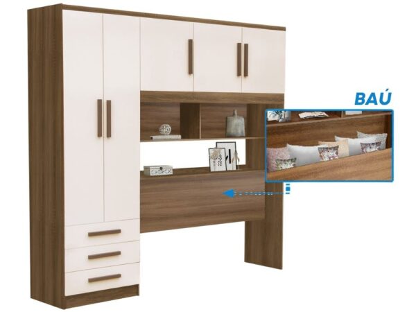 O Guarda Roupa Acoplado México + Floripa de Casal 7 Portas é ideal para otimizar o espaço do ambiente e deixar tudo organizado. Possui 3 nichos internos, 2 nichos externos, 1 baú na cabeceira, 7 portas articuladas, 5 gavetas externas com corrediças metálicas. Possui pintura UV com acabamento texturizado amadeirado, que oferece ao produto resistência e durabilidade.