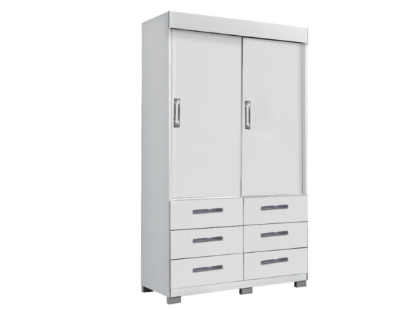 Guarda-Roupa Buzios 2 portas de correr com espelho 6 gavetas – Branco