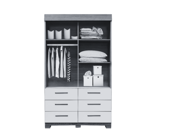 Guarda-Roupa Buzios 2 portas de correr com espelho 6 gavetas – Mel