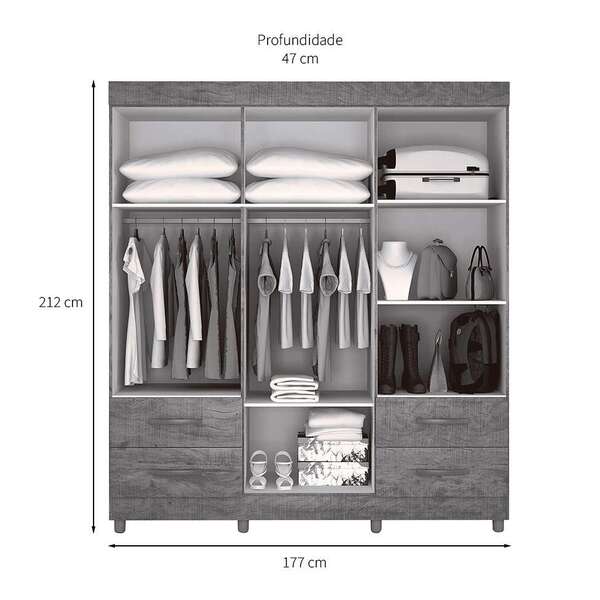 Guarda Roupa Casal 6 Portas com espelho e 4 Gavateas Verona Cinamomo/Off White Salleto