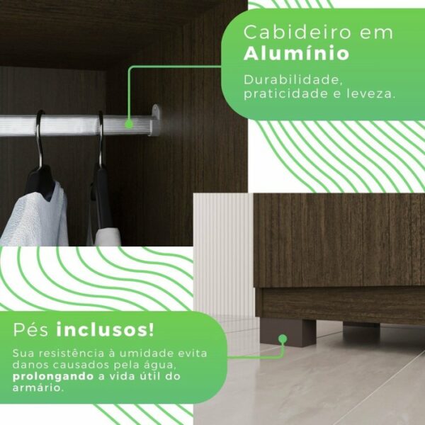 Guarda Roupa Casal Ambiente Quarto Estrutura MDP/MDF Quantidade de Portas 08 Quantidade de Gavetas 04 Tipo de Dobradiça Metálica Tipo de Corrediça Telescópica Material Puxadores MDF Acabamento Pintura UV Necessita Montagem: Sim – Acompanha Manual de Instalação: Sim