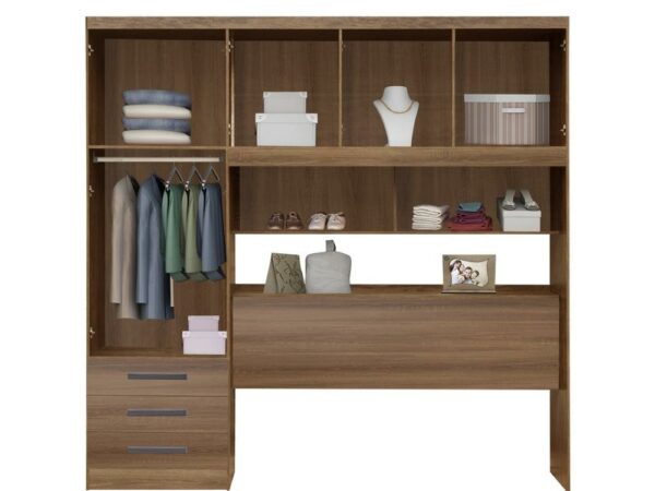 O Guarda Roupa México de Casal 5 Portas é ideal para otimizar o espaço do ambiente e deixar tudo organizado. Possui 3 nichos internos, 2 nichos externos, 1 baú na cabeceira, 5 portas articuladas, 3 gavetas externas com corrediças metálicas. Possui pintura UV com acabamento texturizado amadeirado, que oferece ao produto resistência e durabilidade.