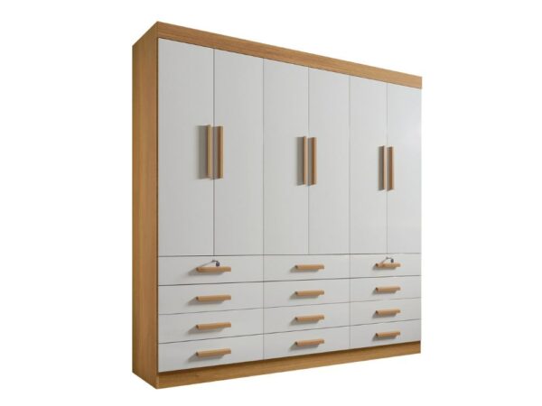 Guarda-Roupa Mônaco 6 portas e 12 gavetas – Cinamomo/Off White