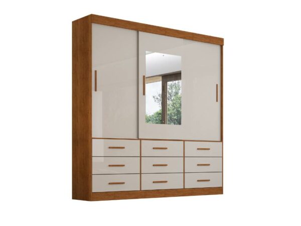 Guarda-Roupa New Star 3 portas de correr com espelho – Cinamomo/Off white