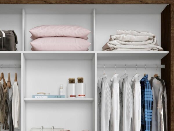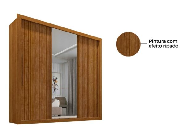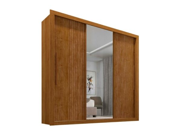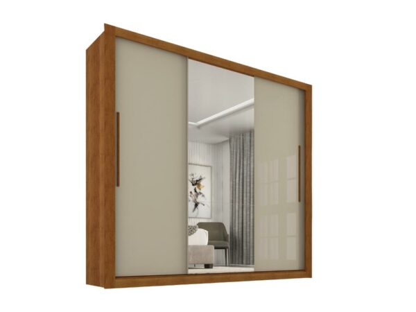 Guarda-Roupa Panamá 3 portas de correr flex com 1 espelho – Cinamomo Ripado/Off White
