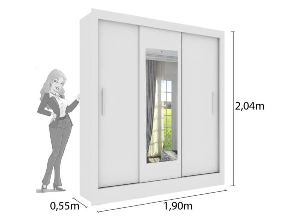 Guarda-Roupa Valência c/espelho 3 Portas 4 Gavetas Tcil – Branco