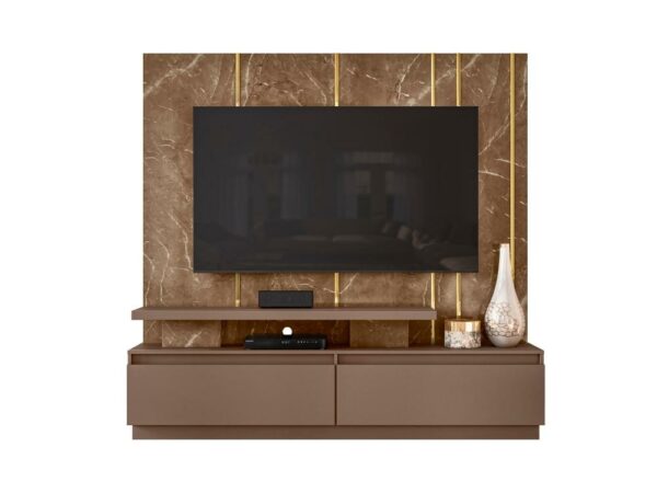 Um móvel sofisticado com uma composição de cores moderna, pintura imitando pedra, além de contar com a delicadeza dos acabamentos em Hot Stamping. O Home Theater Apolo une todas essas características sem deixar de lado a funcionalidade. Com 1.83m de largura, ele possui 2 gavetas com corrediças telescópicas, painel que suporta TV’s de até 75” e chapas de 15 e 40mm.