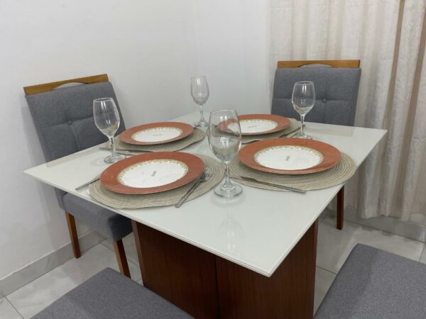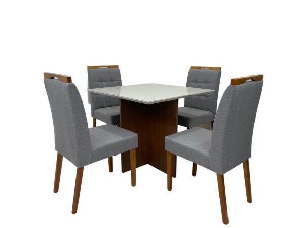 Mesa de Jantar Helo 0.90×0.90 Com 4 Cadeiras Nicole – Mel/Off White/Cinza