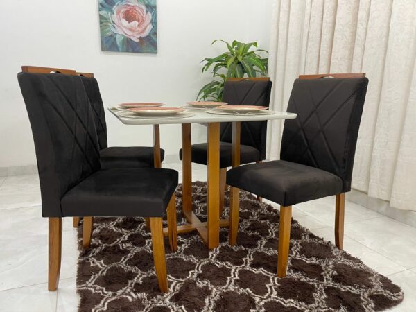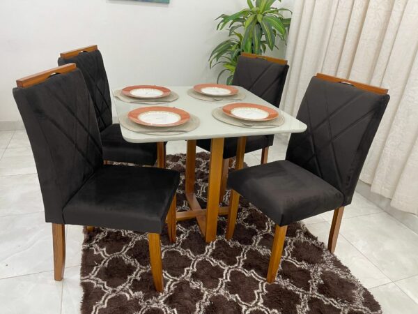 Mesa de Jantar Itália 1.20×0.80 Com 4 Cadeiras Califórnia – Cinamomo/Off White/Marrom