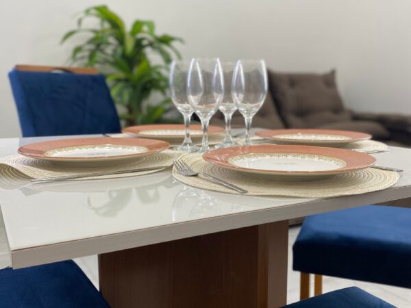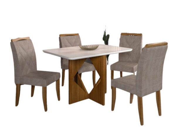 Mesa de Jantar Itália 1.60×0.80 Com 6 Cadeiras Califórnia – Cinamomo/Off White/Marrom