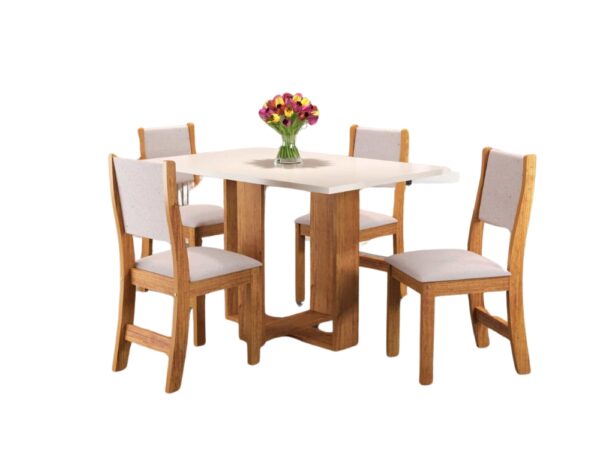 Mesa de Jantar Magic 1.20×0.80 Com 4 Cadeiras Sol Veludo – Mel/Blonde Pastel