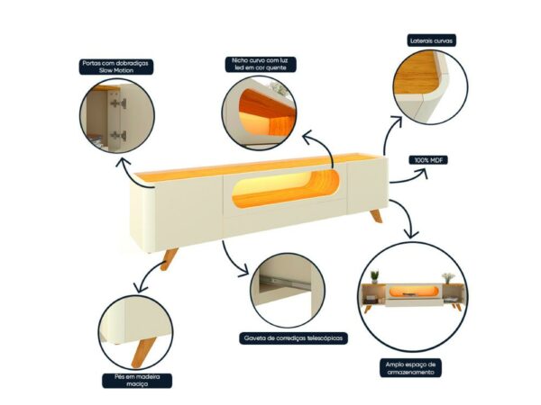 Rack com Painel Nobre 85″ – Naturale/Off White