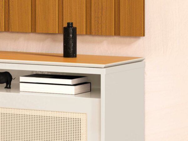 Já o Painel Brise que acompanha o Rack Hannover é uma peça única e exclusiva que confere um toque de sotisficação e elegância ao ambiente. Com seu design inovador e diferenciado,este painel é capaz de tornar a sala de estar ainda mais agradável e acolhedora proporcionando um ambiente mais moderno e descontraído.