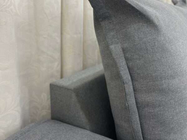 Espuma D26 Hiper soft envolvida com manta siliconada, sofá com Molas bonel e pillow 8 cm. Dividido em 2 módulos 0,80 para facilitar a desmontagem.