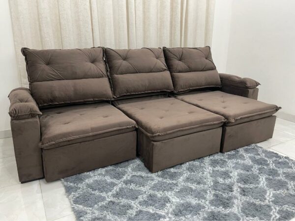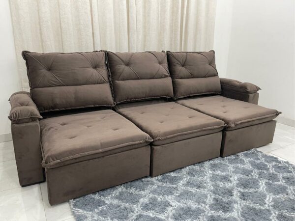 Sofá Retrátil e Reclinável REF 2030 2.80m – Marrom Veludão
