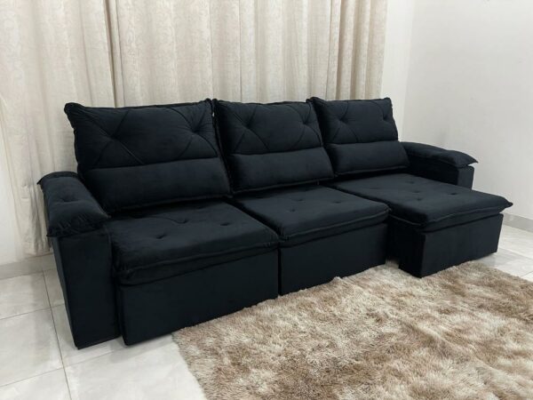 Sofá Retrátil e Reclinável REF 2030 2.80m – Preto Veludão