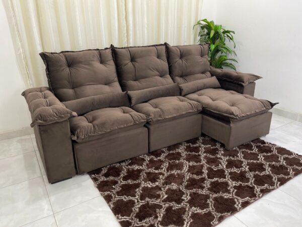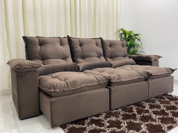 Sofá Retrátil Reclinável Atenas 2.70m – Marron Veludo