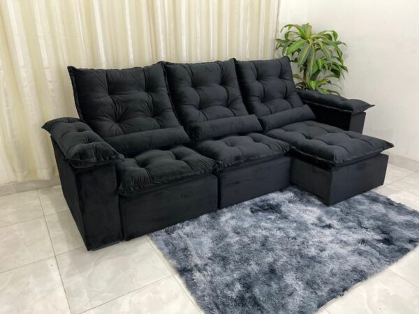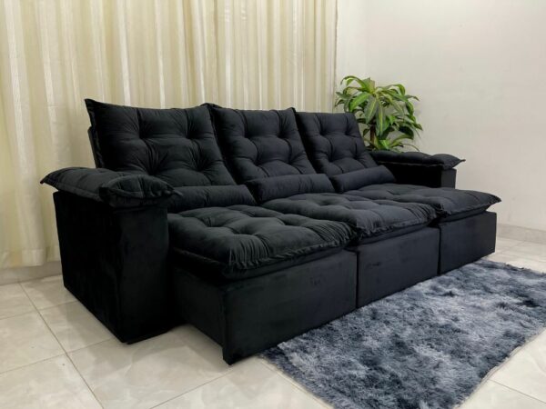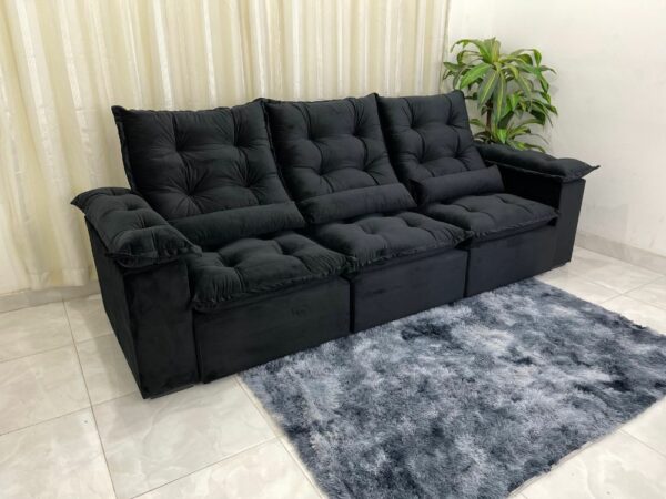 Sofá Retrátil Reclinável Atenas 2.70m – Preto Veludo