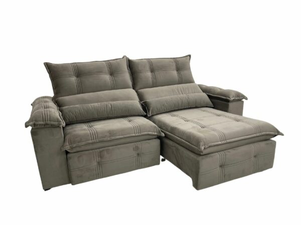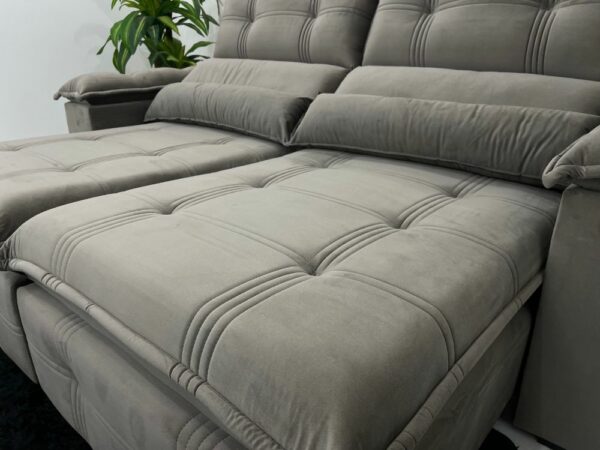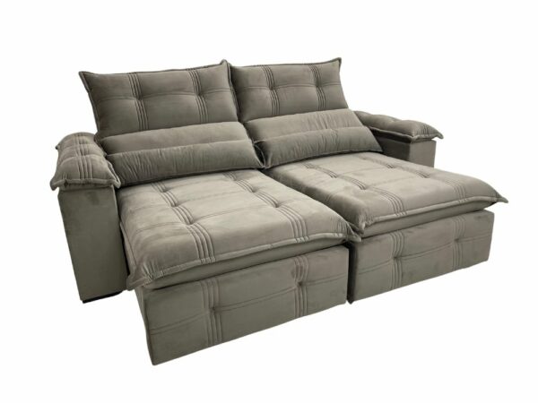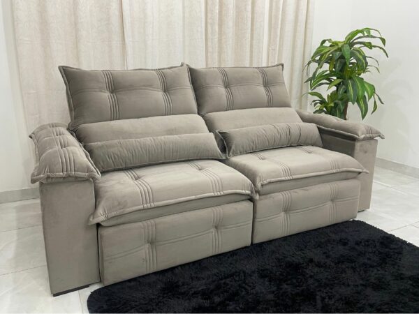 Sofá Retrátil Reclinável Barra Bonita 2.30m – Bege Veludo