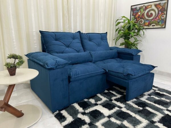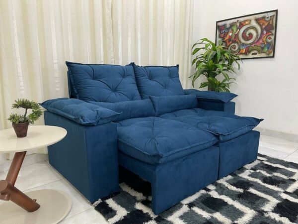 Sofá Retrátil Reclinável Grécia 1.90m – Azul Veludinho