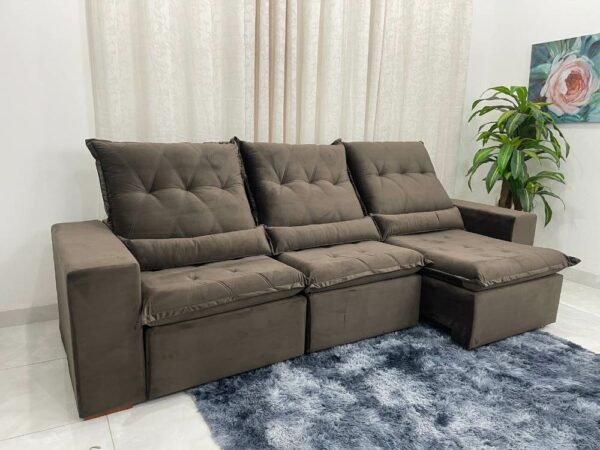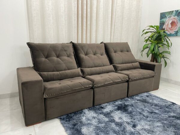 Sofá Retrátil e Reclinável Las Vegas 2.70m – Marrom Veludão