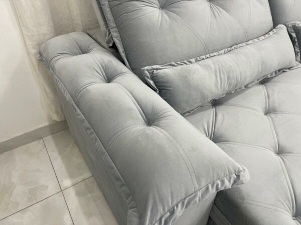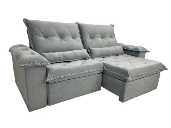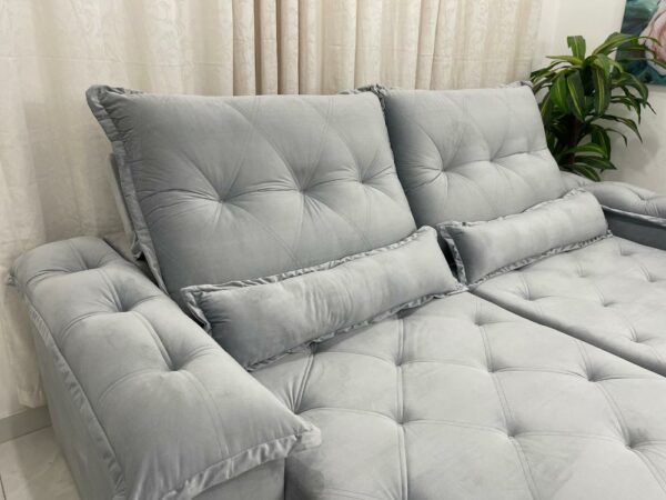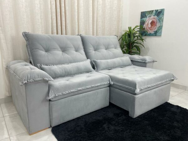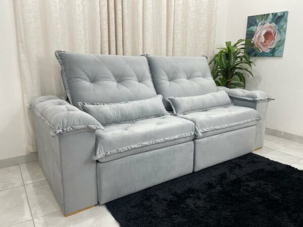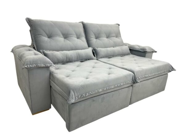 Sofá Retrátil Reclinável Valência 2.50m – Prata Veludo
