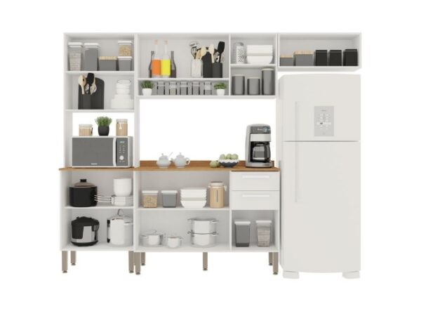 Combo Armário de Cozinha Aéreo 3 portas + Balcão 1.20 New Valência – Branco