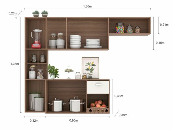 Armário de Cozinha Aéreo Baronesa 1 portas Nicho 1,20 – Freijó
