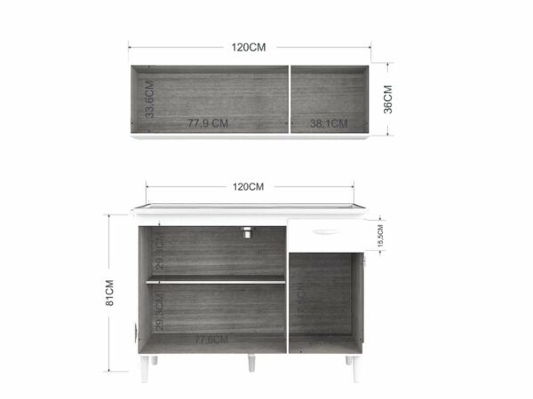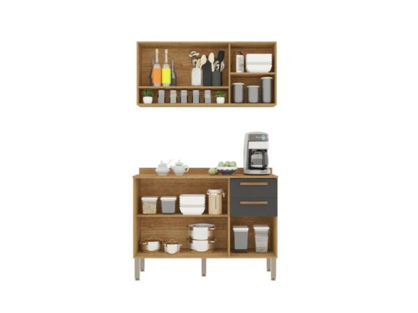 Combo Armário de Cozinha Aéreo 3 portas + Balcão 1.20 New Valência – Cinamomo/Grafite