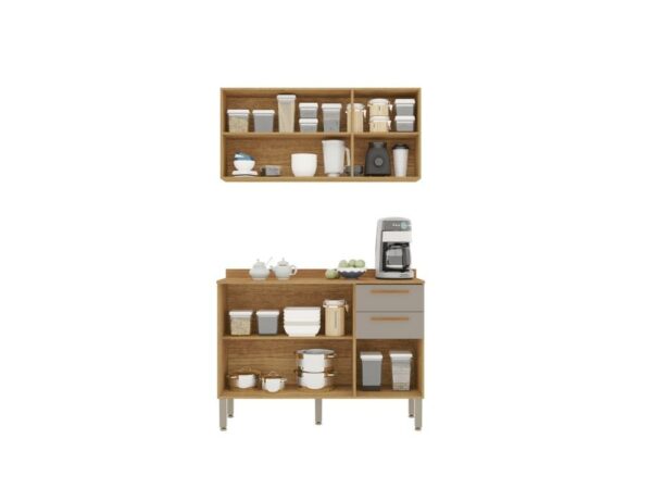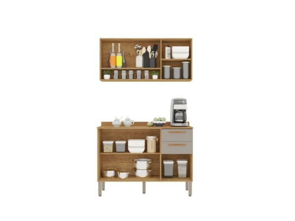 Combo Armário de Cozinha Aéreo 3 portas + Balcão 1.20 New Valência – Cinamomo/Off White