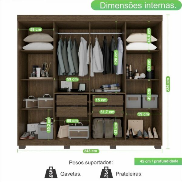 Guarda Roupa Casal 06 Portas 02 Gavetas Sergipe com Pés Cinamomo