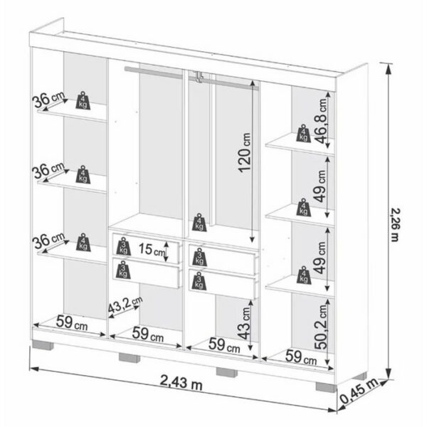 Guarda-Roupa Teresópolis c/ espelho 3 Portas e 4 Gavetas – Cinamomo