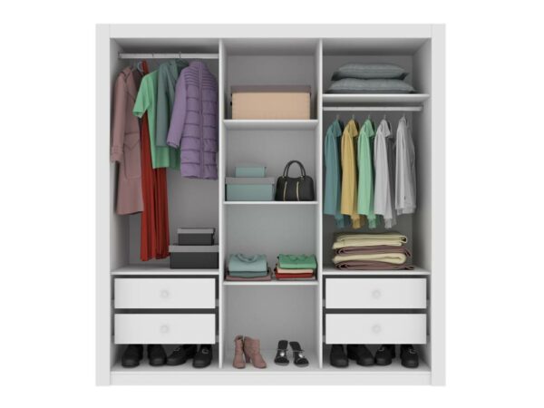Guarda-Roupa Buzios 2 portas de correr com espelho 6 gavetas – Branco