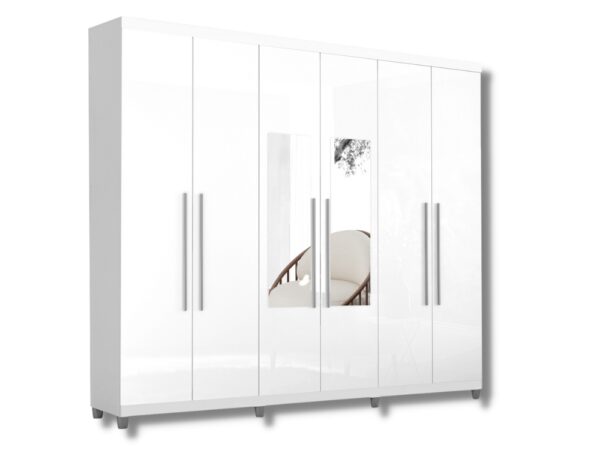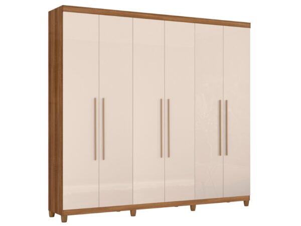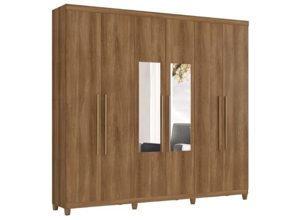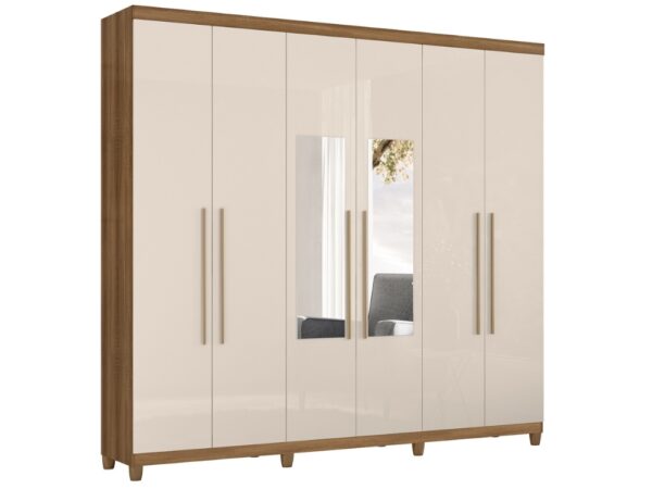Guarda-Roupa Porto Bello Plus 6 portas com espelho – Mel/Off White