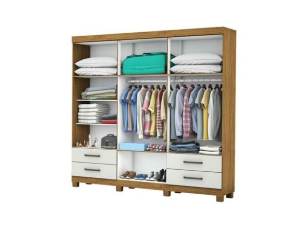 Guarda-Roupa Da Vinci Plus 4 portas e 3 gavetas – Ipê/Off white