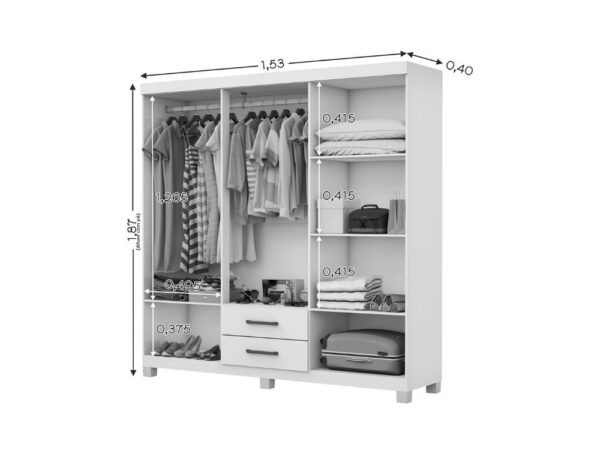 Guarda-Roupa Veneza Plus c/ espelho 3 portas e 4 gavetas – Branco