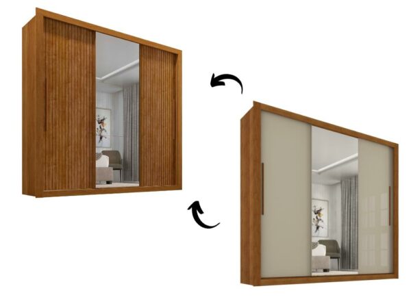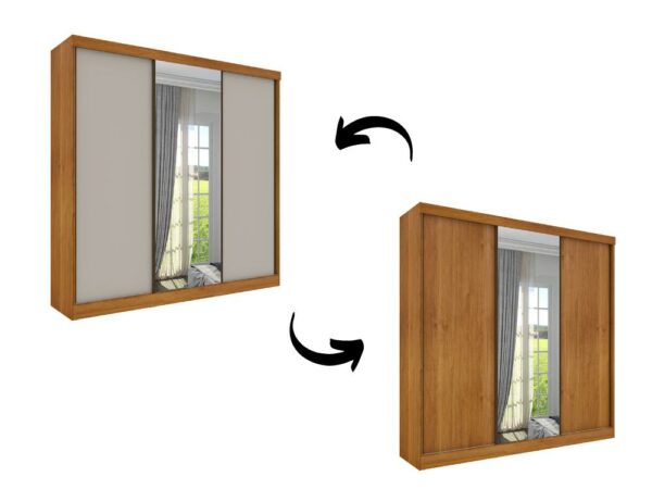 Guarda-Roupa Panamá 3 portas de correr flex com 1 espelho – Cinamomo Ripado/Off White