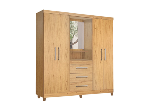 Guarda-Roupa Hércules c/ espelho 4 portas e 2 gavetas – Cinamomo/Off White
