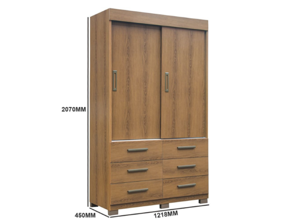Guarda-Roupa Buzios 2 portas de correr com espelho 6 gavetas – Mel