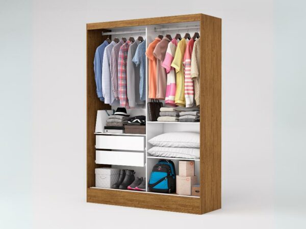 Guarda-Roupa Santiago c/ espelho 2 Portas e 2 Gavetas – Cinamomo/Branco